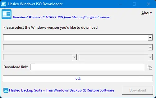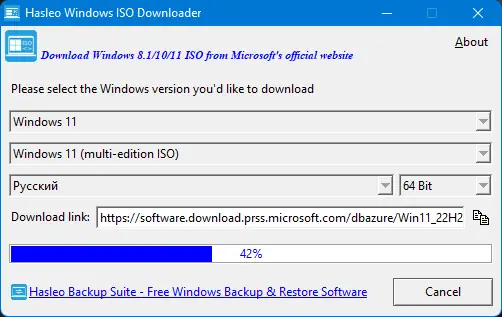 Hasleo Windows ISO Downloader — это бесплатный инструмент, позволяющий быстро загружать официальные ISO-образы операционных систем Windows 11, Windows 10 и Windows 8.1 напрямую с серверов Microsoft. Программа не требует установки, имеет компактный размер и проста в использовании, что делает её удобным решением для подготовки установочных носителей.