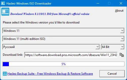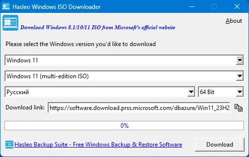 Hasleo Windows ISO Downloader доступна для бесплатного скачивания в последней версии. Обновление до версии 2.0 устранило проблему с загрузкой из-за изменений на сайте Microsoft. Утилита остаётся легкой, быстрой и не требует прав администратора для запуска.