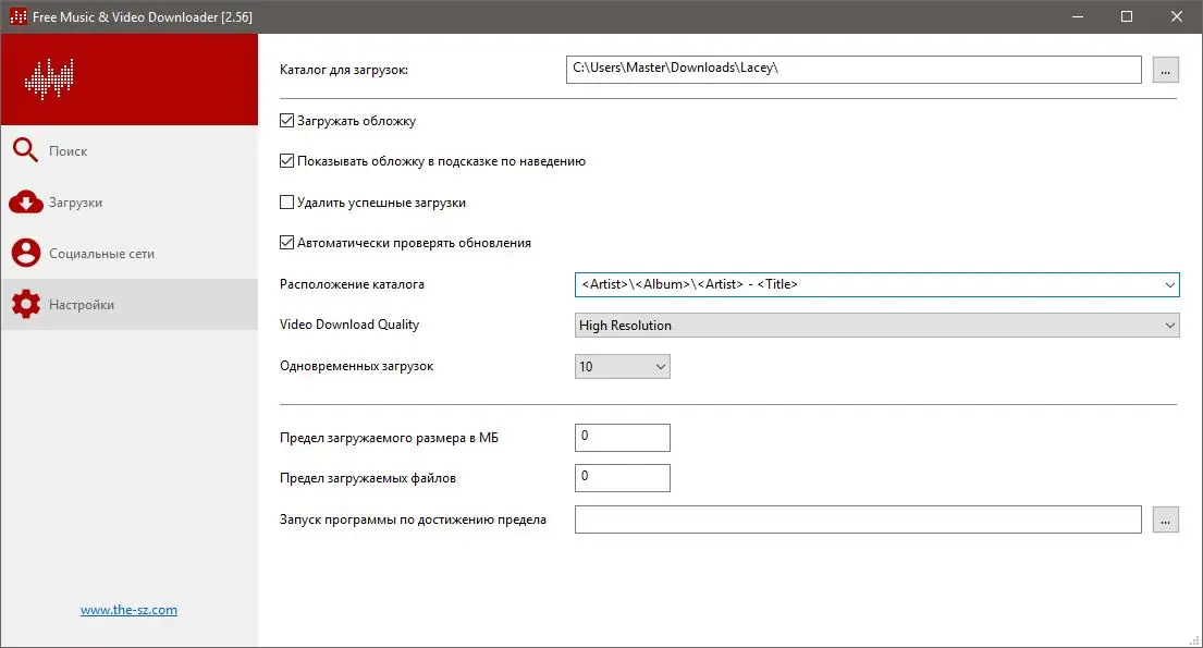 Работа с Lacey Free Music & Video Downloader