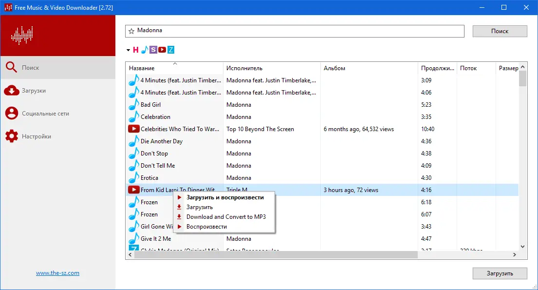 Lacey Free Music & Video Downloader — это портативное приложение для поиска, загрузки и конвертации аудио и видео с популярных интернет-ресурсов. Программа поддерживает множество платформ, включая легальные и пользовательские сервисы, и позволяет сохранять контент в удобном формате без необходимости установки.