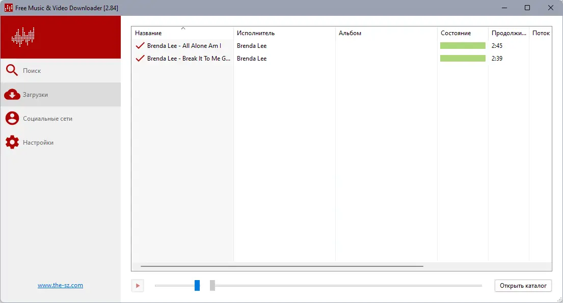 Работа с Lacey Free Music & Video Downloader