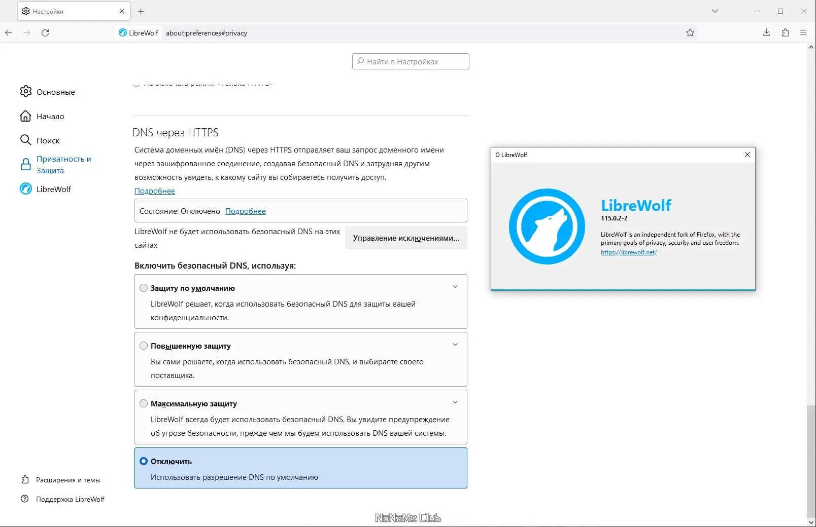 LibreWolf не требует дополнительной настройки — безопасность и приватность активированы сразу после запуска.