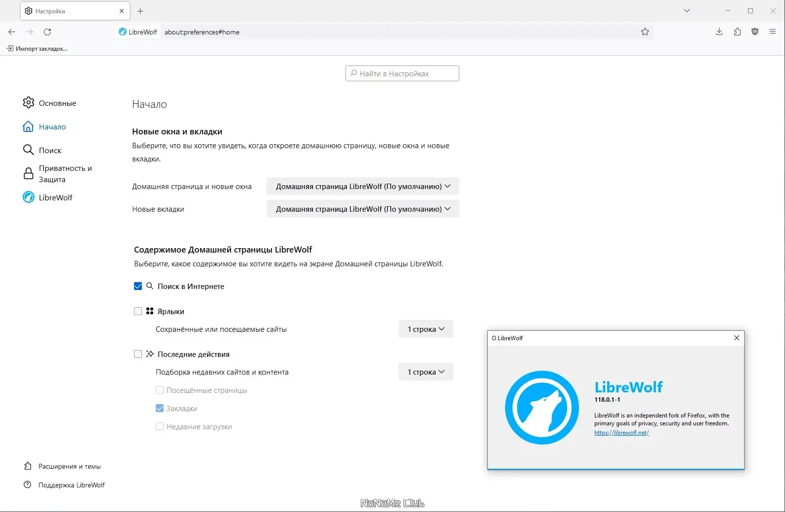 LibreWolf — это форк браузера Firefox, ориентированный на максимальную приватность и безопасность. Программа поставляется с предустановленными настройками, отключающими телеметрию, блокирующими трекеры и рекламу, а также обеспечивает автоматическое удаление данных после закрытия. Браузер работает на платформе Windows и доступен для скачивания на русском языке.