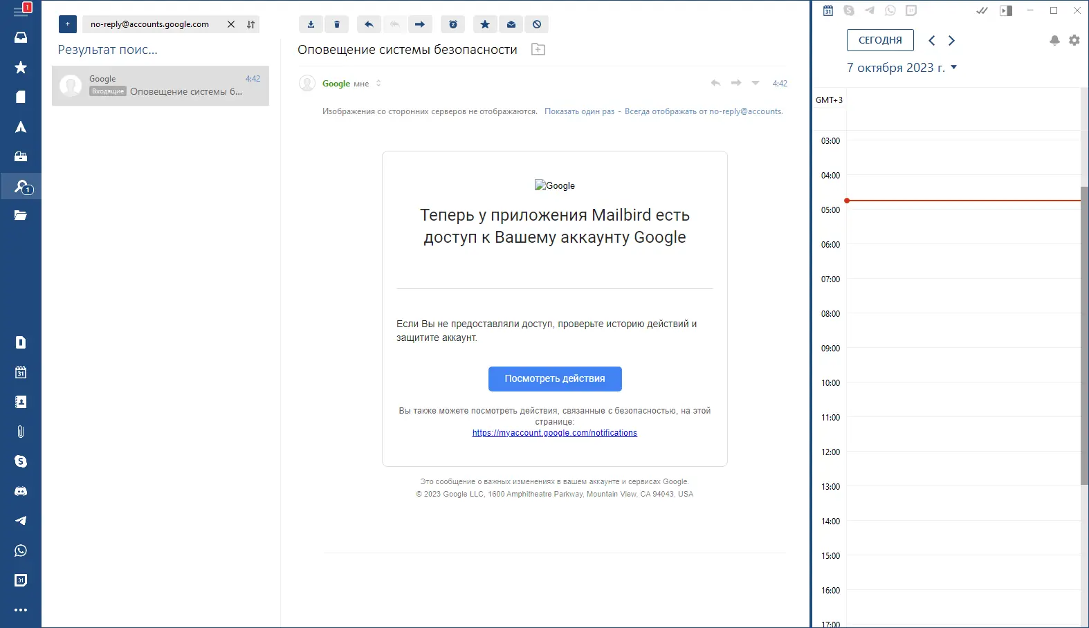 Mailbird представляет собой универсальное решение для управления электронной почтой на персональном компьютере. Программа поддерживает протоколы IMAP и POP3, что позволяет подключать аккаунты почти от любого провайдера. Интерфейс разделён на три основные зоны: слева — панель с папками и ярлыками, в центре — цепочки писем, справа — содержимое выбранного сообщения. Ниже отображаются встроенные приложения, такие как календарь, мессенджеры и менеджеры задач. Такая структура обеспечивает логичную навигацию и удобство при работе с большим объёмом писем.