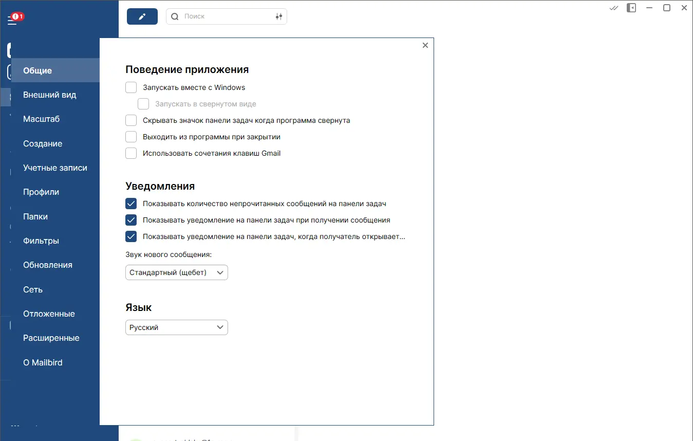 Работа с Mailbird