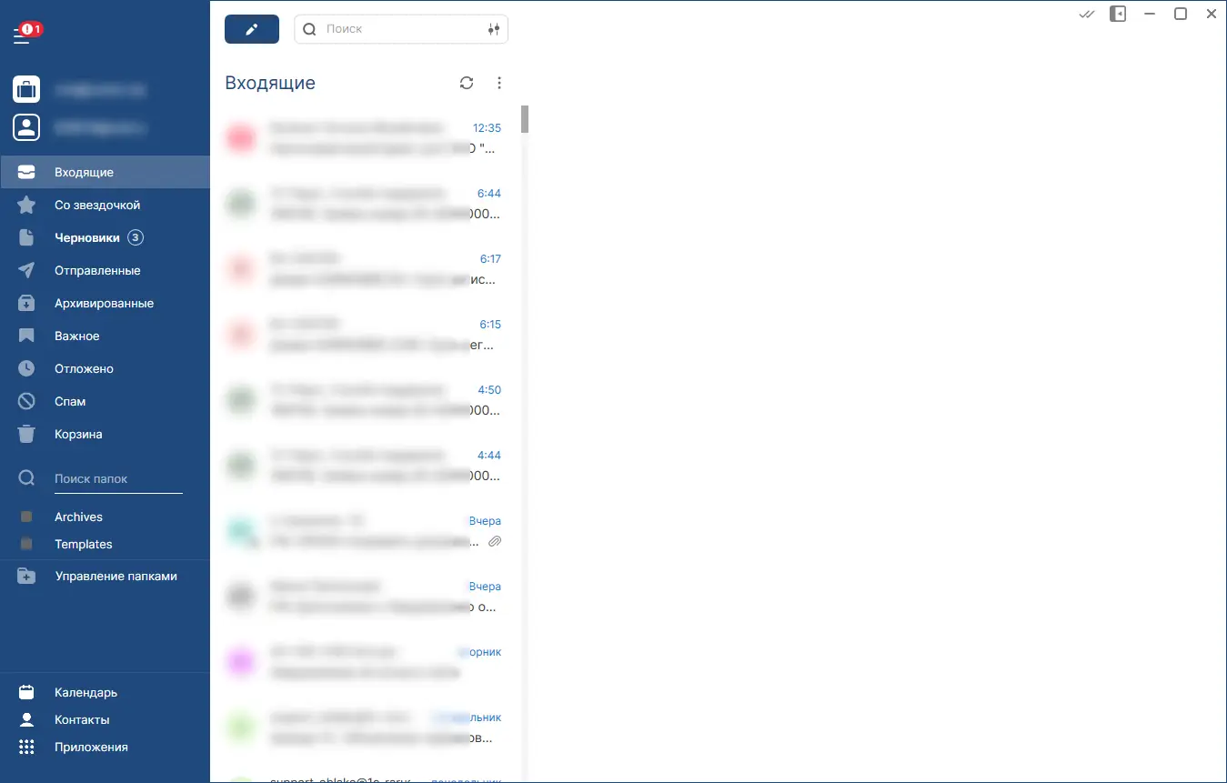 - Быстрая синхронизация и локальное хранение писем
