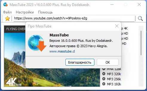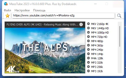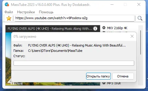 MassTube — это компактная утилита для быстрого скачивания видео с YouTube и других платформ. Программа позволяет сохранять ролики в различных форматах и разрешениях, включая ultra HD, без необходимости авторизации и с минимальной нагрузкой на систему.