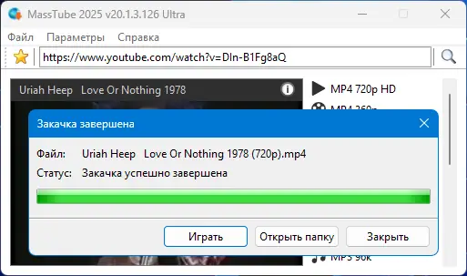 MassTube — удобная программа для скачивания видео с YouTube и других платформ за пару кликов. Она поддерживает высокие разрешения, включая Ultra HD, и работает без регистрации, обеспечивая быстрый доступ к медиафайлам в нужном формате.