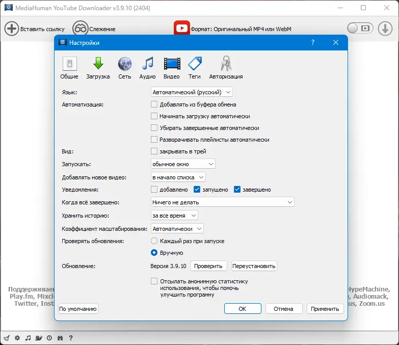 MediaHuman YouTube Downloader — это удобное приложение для загрузки видео и аудио с YouTube и других платформ. Программа поддерживает высокие разрешения, включая 4K и 8K, а также позволяет сохранять только звуковую дорожку. Вы можете использовать её для скачивания отдельных роликов, плейлистов или целых каналов без потерь в качестве.