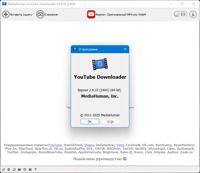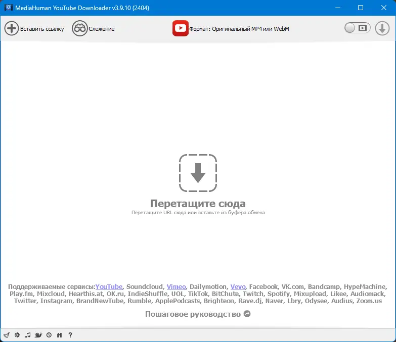 MediaHuman YouTube Downloader — это многофункциональный инструмент, предназначенный для извлечения медиаконтента из популярных онлайн-сервисов. Приложение работает не только с YouTube, но также поддерживает такие платформы, как Vimeo, Dailymotion, ВКонтакте, Rutube, SoundCloud, Facebook и другие. Это делает его универсальным решением для пользователей, которые регулярно просматривают контент на разных сайтах и хотят иметь к нему автономный доступ. Интерфейс программы простой и интуитивно понятный, что позволяет быстро освоить все функции даже новичкам.
