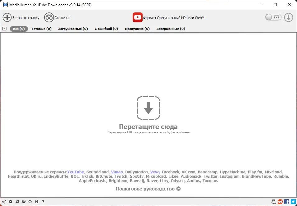 MediaHuman YouTube Downloader — это многофункциональный инструмент, предназначенный для быстрого и стабильного скачивания видео и аудиофайлов из интернета. Он работает с YouTube, Vimeo, Dailymotion, Facebook, ВКонтакте, OK.ru и множеством других платформ, обеспечивая широкую совместимость. Программа позволяет не только загружать отдельные ролики, но и целые плейлисты или каналы, автоматически распознавая ссылки через буфер обмена.