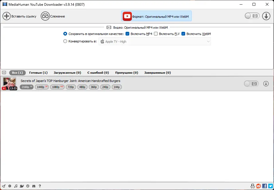 MediaHuman YouTube Downloader — удобное приложение для загрузки видео и аудио с YouTube и других популярных платформ. Программа поддерживает высокие разрешения, включая 4K и 8K, а также позволяет сохранять аудиодорожки отдельно. Благодаря интуитивному интерфейсу и расширенным настройкам, она подходит как для новичков, так и для опытных пользователей, желающих скачивать контент в оригинальном качестве.