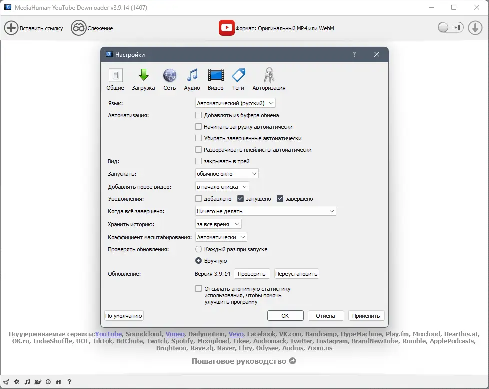 MediaHuman YouTube Downloader — это мощное приложение, разработанное для пользователей, которым необходимо сохранять контент с видеохостингов. Оно поддерживает множество сайтов, включая YouTube, Vimeo, Dailymotion, Facebook, ВКонтакте и другие. Программа позволяет выбирать качество загрузки, сохранять оригинальное разрешение и автоматически извлекать аудиодорожки.