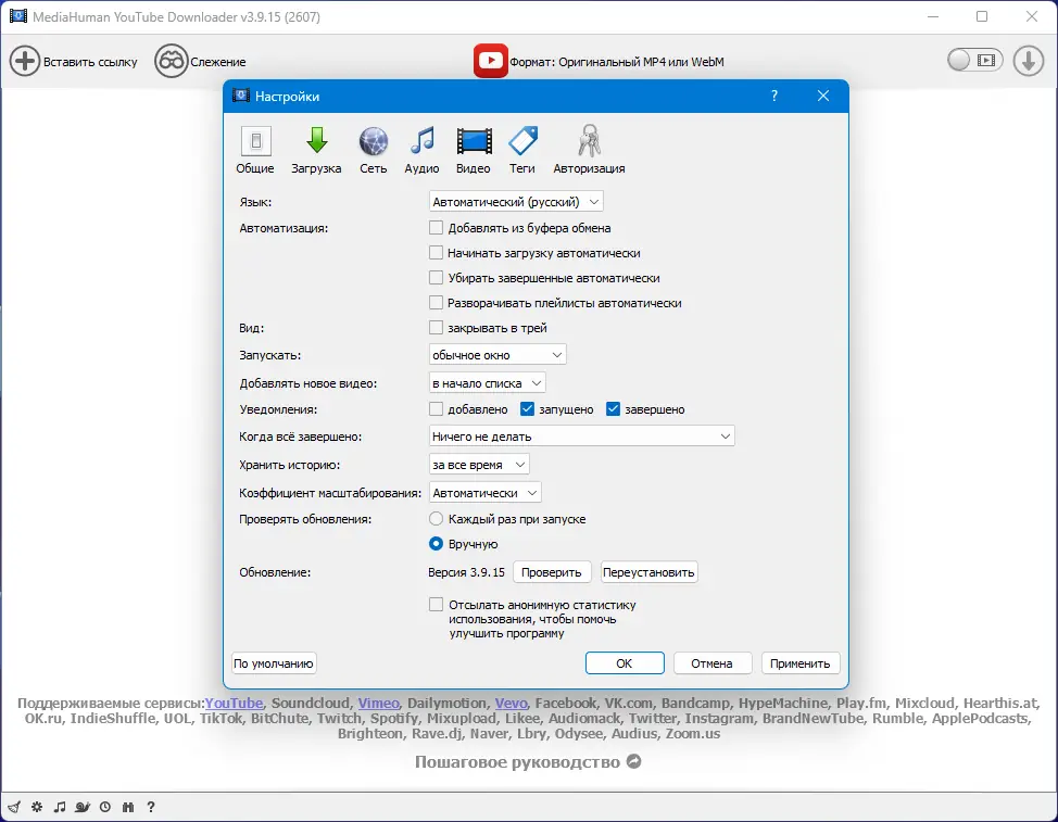 MediaHuman YouTube Downloader — это многофункциональный инструмент для скачивания мультимедиа с различных онлайн-ресурсов. Основной акцент сделан на YouTube, но приложение также работает с такими сервисами, как Vimeo, Rutube, Dailymotion, ВКонтакте, Facebook, SoundCloud и другими. Это позволяет пользователям централизованно управлять загрузкой контента без необходимости использовать несколько разных программ. Интерфейс интуитивно понятен, а процесс скачивания оптимизирован для максимальной скорости и стабильности.