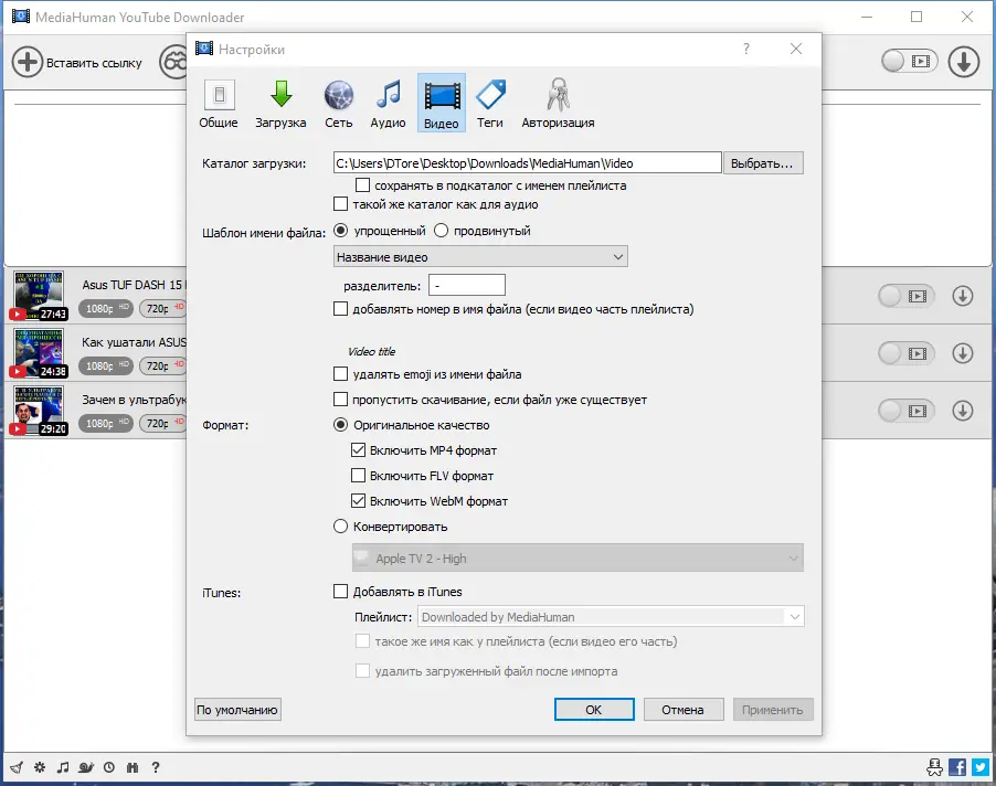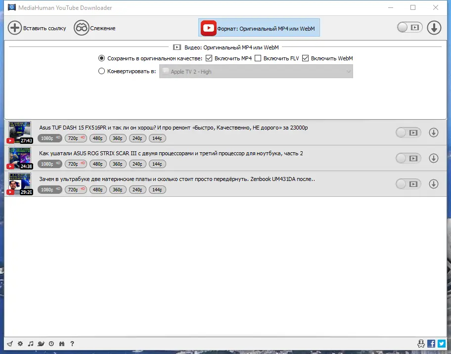 Работа с MediaHuman YouTube Downloader