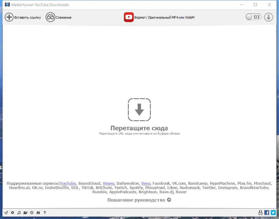 - Простой интерфейс с поддержкой drag & drop — достаточно перетащить ссылку на окно программы.