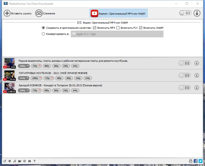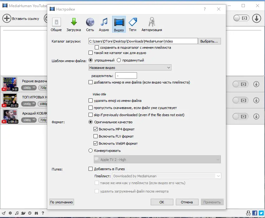 Работа с MediaHuman YouTube Downloader