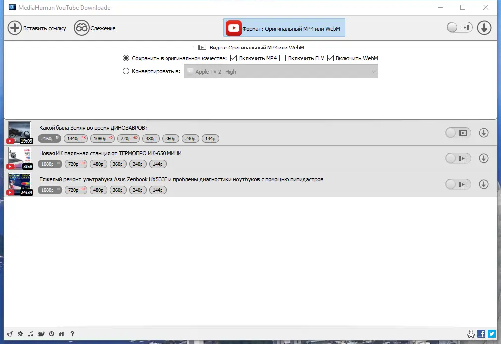 Работа с MediaHuman YouTube Downloader