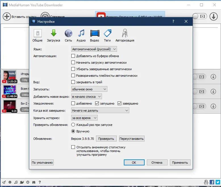 Для начала работы достаточно скопировать ссылку на видео и вставить её в основное окно приложения. Альтернативно, можно использовать drag & drop — просто перетащить URL с браузера в интерфейс программы. После добавления в очередь пользователь выбирает нужное качество и формат, после чего запускается процесс. Если активирована функция слежения за буфером, ссылки будут добавляться автоматически. Для загрузки плейлистов или каналов вставляется соответствующий URL, и программа сама определит тип контента.