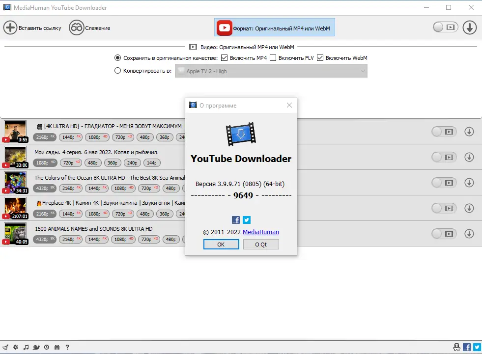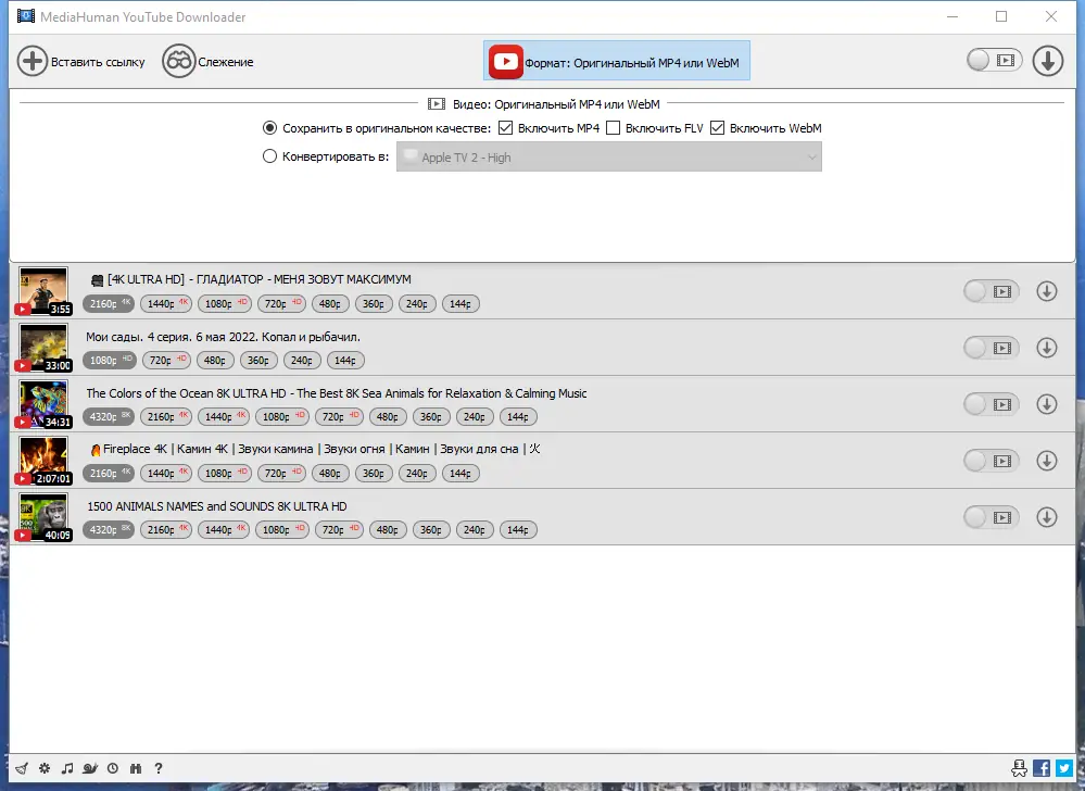MediaHuman YouTube Downloader — это универсальное приложение для скачивания видео с YouTube и других популярных платформ. Оно поддерживает высокие разрешения, включая 4K и 8K, а также позволяет извлекать аудиодорожки в формате MP3. Программа проста в использовании и подходит как для новичков, так и для опытных пользователей.