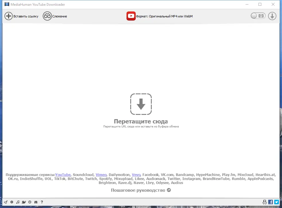 - Полная поддержка технологии drag & drop — достаточно перетащить ссылку на окно программы.