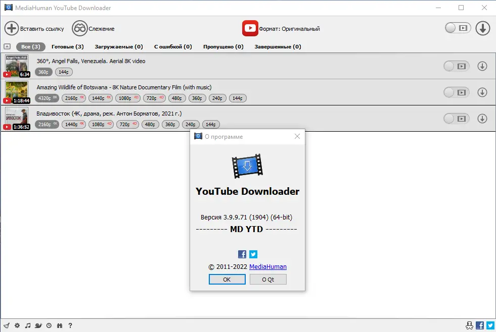 Программа предоставляет простой и интуитивно понятный интерфейс, с которым справится даже начинающий пользователь. Достаточно скопировать ссылку на видео и добавить её в очередь загрузки. Приложение само определит доступные форматы и разрешения, включая 4K и 8K, позволяя выбрать наиболее подходящий вариант. Функция конвертации в MP3 особенно полезна для тех, кто хочет сохранить только аудиодорожку.