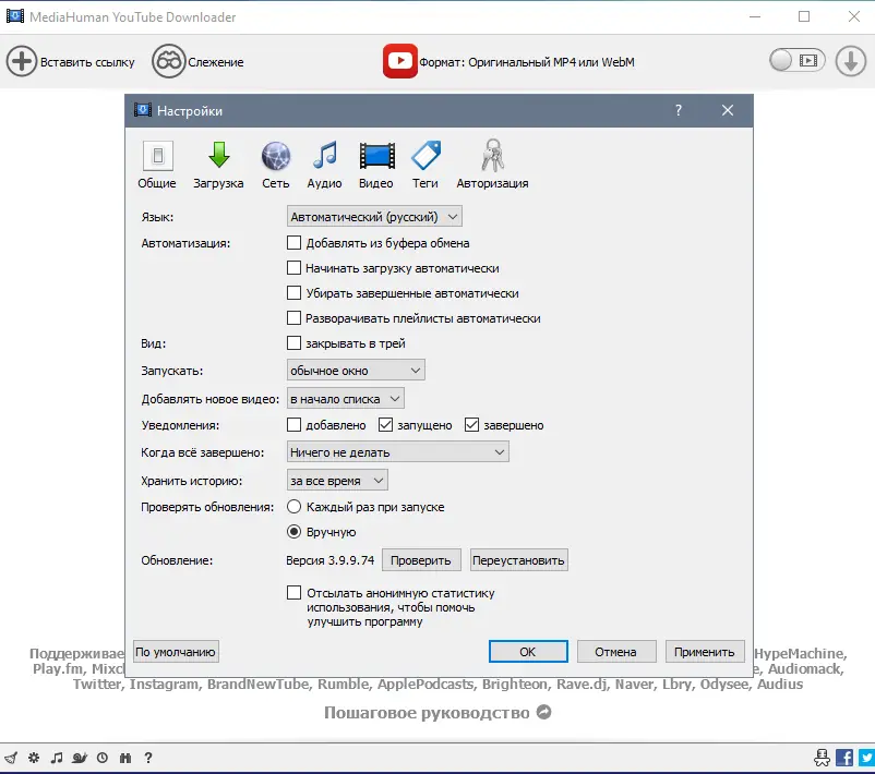 Работа с MediaHuman YouTube Downloader