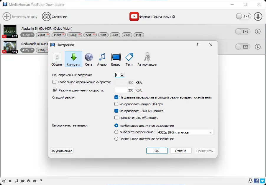 MediaHuman YouTube Downloader — это программное обеспечение, предназначенное для скачивания видео и аудио с YouTube и других видеосервисов. Приложение поддерживает широкий спектр платформ, включая Vimeo, Rutube, Dailymotion, Facebook, ВКонтакте и Soundcloud. Пользователи могут выбирать нужное качество загрузки — от стандартного до 8K — и сохранять контент в оригинальном виде или конвертировать в другие форматы. Программа подходит как для разовой загрузки отдельных роликов, так и для массового сохранения плейлистов и каналов.