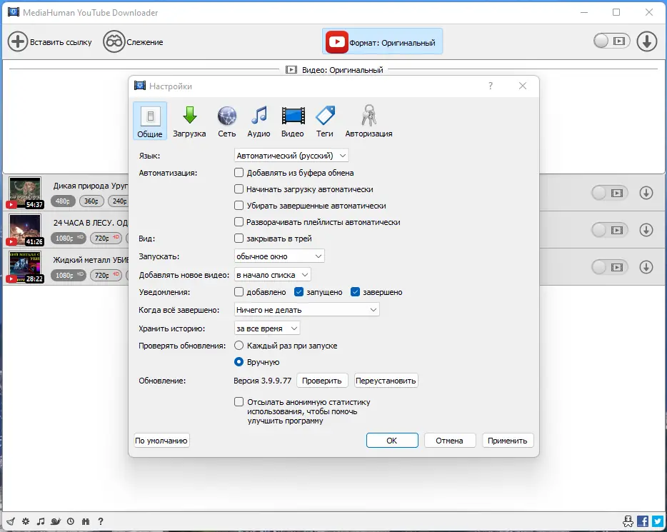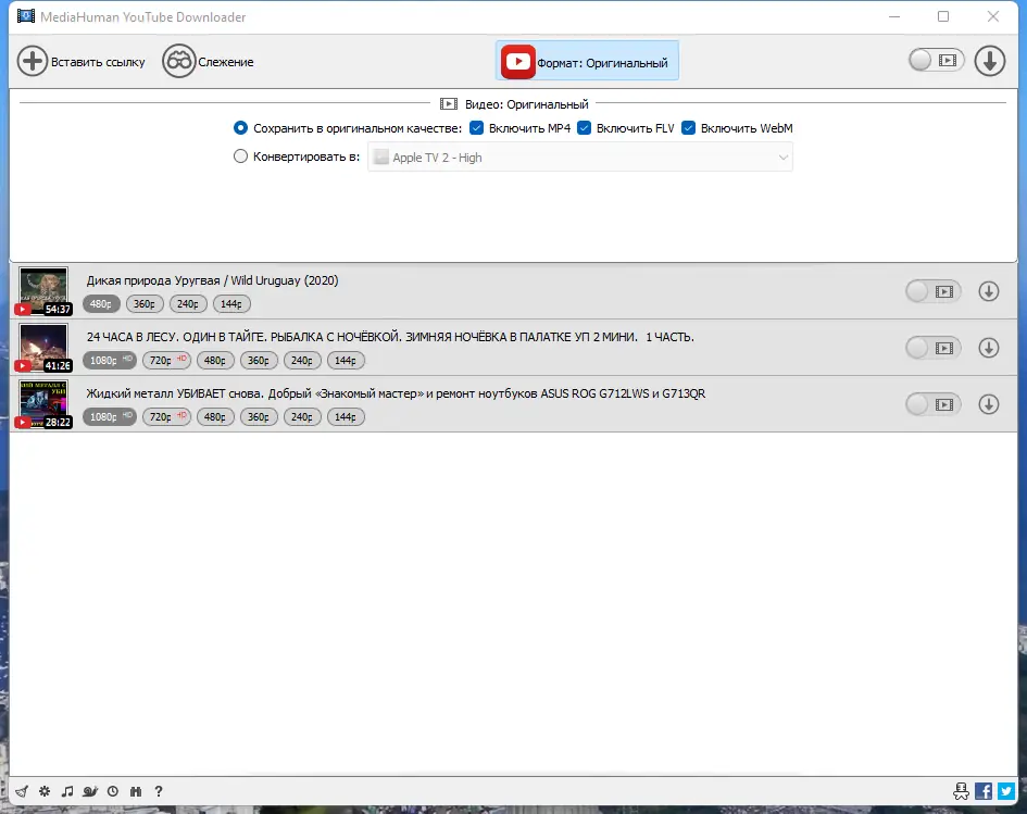Программа сохраняет оригинальное качество видео и позволяет гибко управлять процессом загрузки.