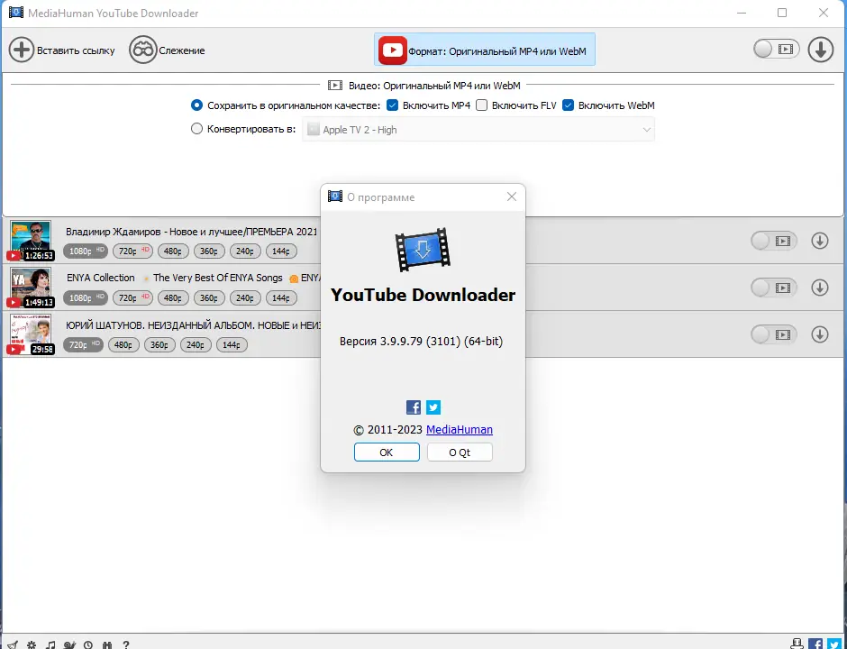 - Поддержка множества платформ, включая YouTube, Vimeo, Dailymotion, ВКонтакте и другие.