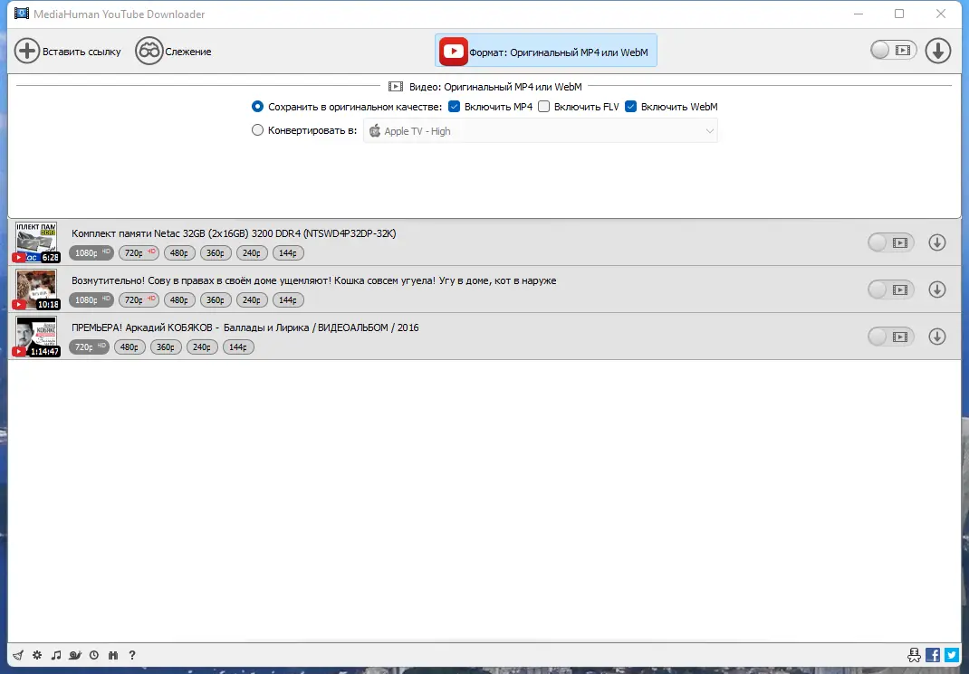 Работа с MediaHuman YouTube Downloader