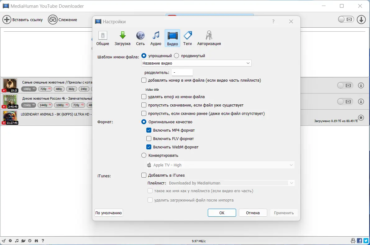 MediaHuman YouTube Downloader — это удобное приложение для загрузки видео и аудио с YouTube и других платформ. Программа поддерживает множество сервисов, позволяет сохранять контент в оригинальном качестве и автоматически добавлять файлы в iTunes или Music.app. Скачать видео или аудиодорожку можно одним кликом, а при необходимости — загрузить целый плейлист или канал.