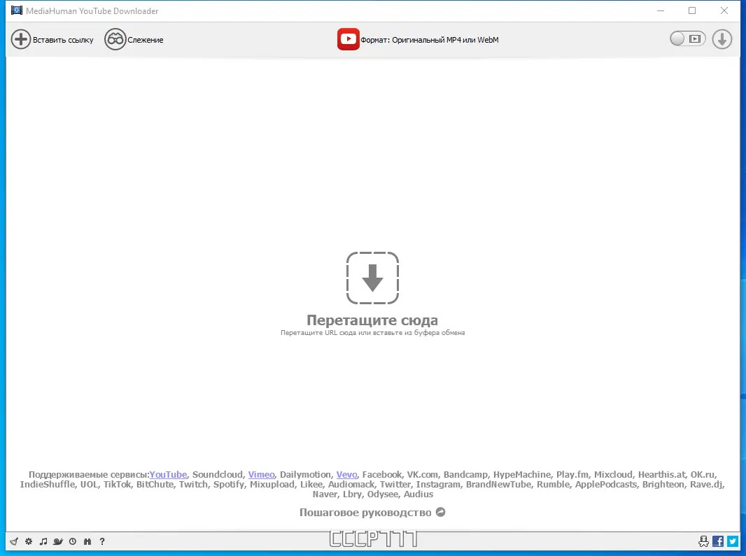 - Работа с буфером обмена: при обнаружении ссылки на поддерживаемый ресурс, программа сама предложит добавить её в очередь.