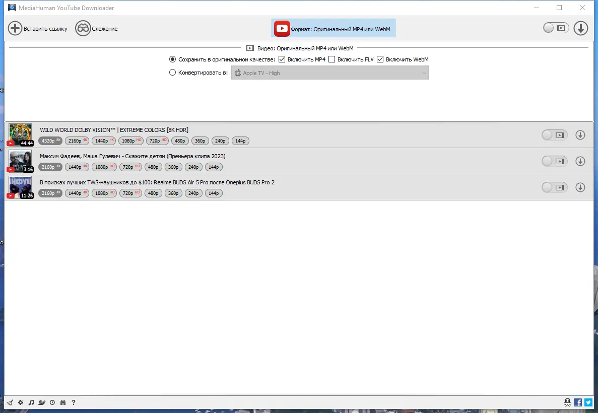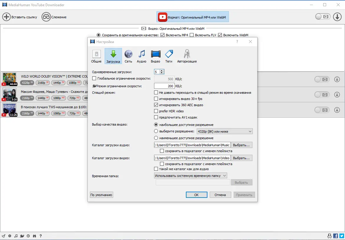 Работа с MediaHuman YouTube Downloader