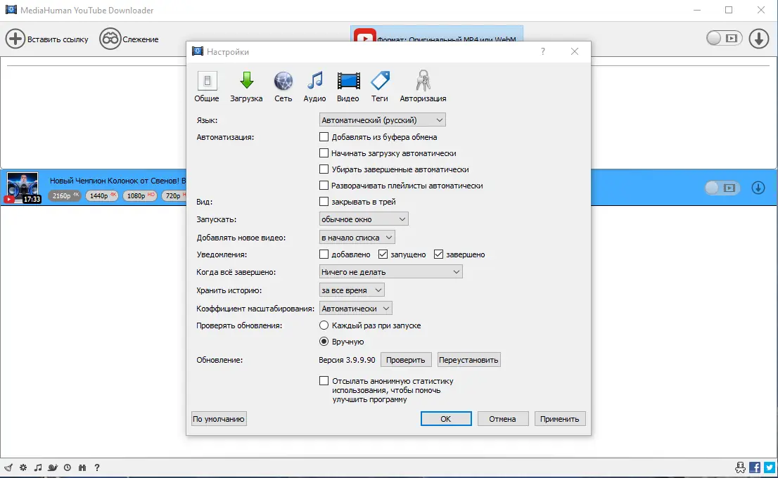 - Доступна загрузка полных плейлистов и каналов с возможностью отслеживания новых роликов.