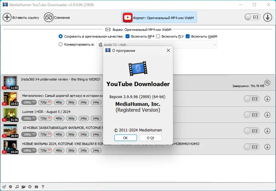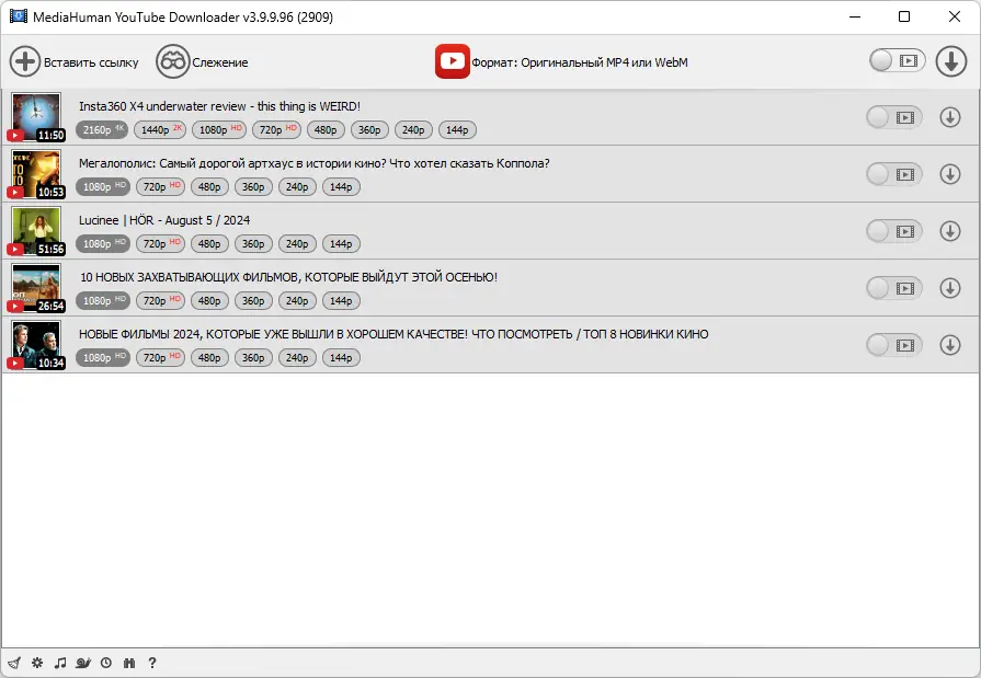 MediaHuman YouTube Downloader — это удобное приложение для загрузки видео и аудио с YouTube и других популярных платформ. Программа поддерживает широкий диапазон форматов и разрешений, включая 4K и 8K, а также позволяет сохранять контент в оригинальном качестве. С её помощью можно скачивать отдельные ролики, целые плейлисты и каналы, включая автоматическую загрузку новых видео.