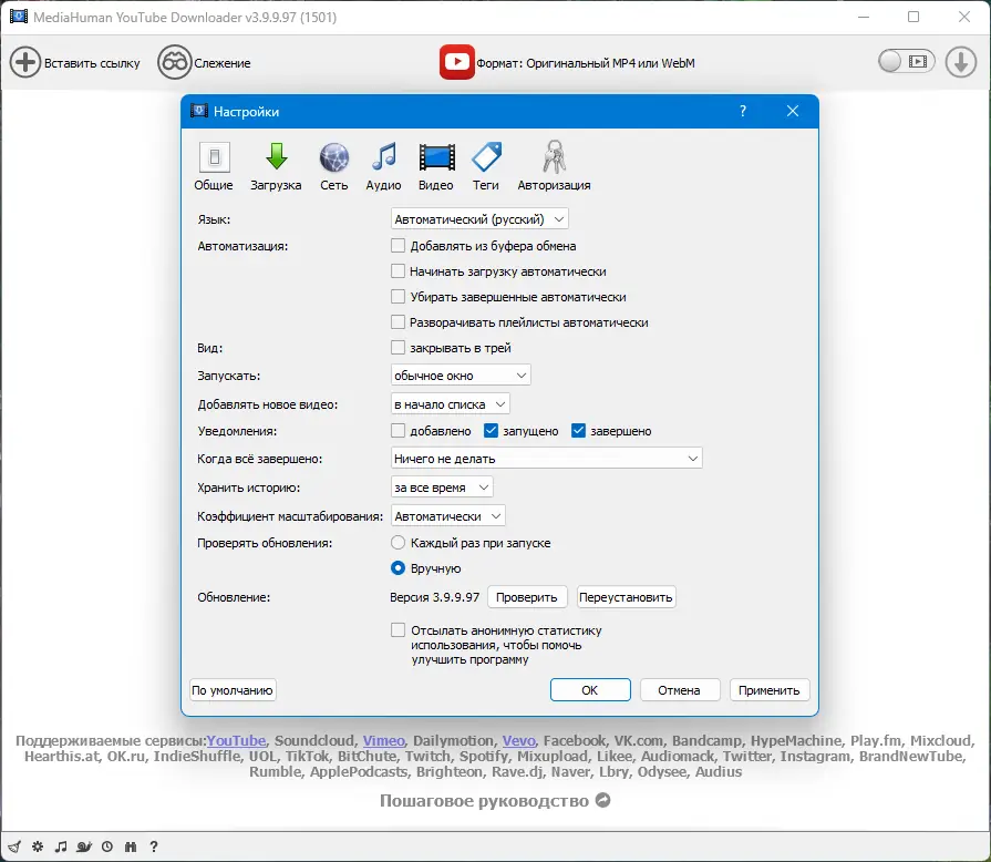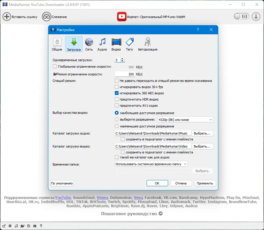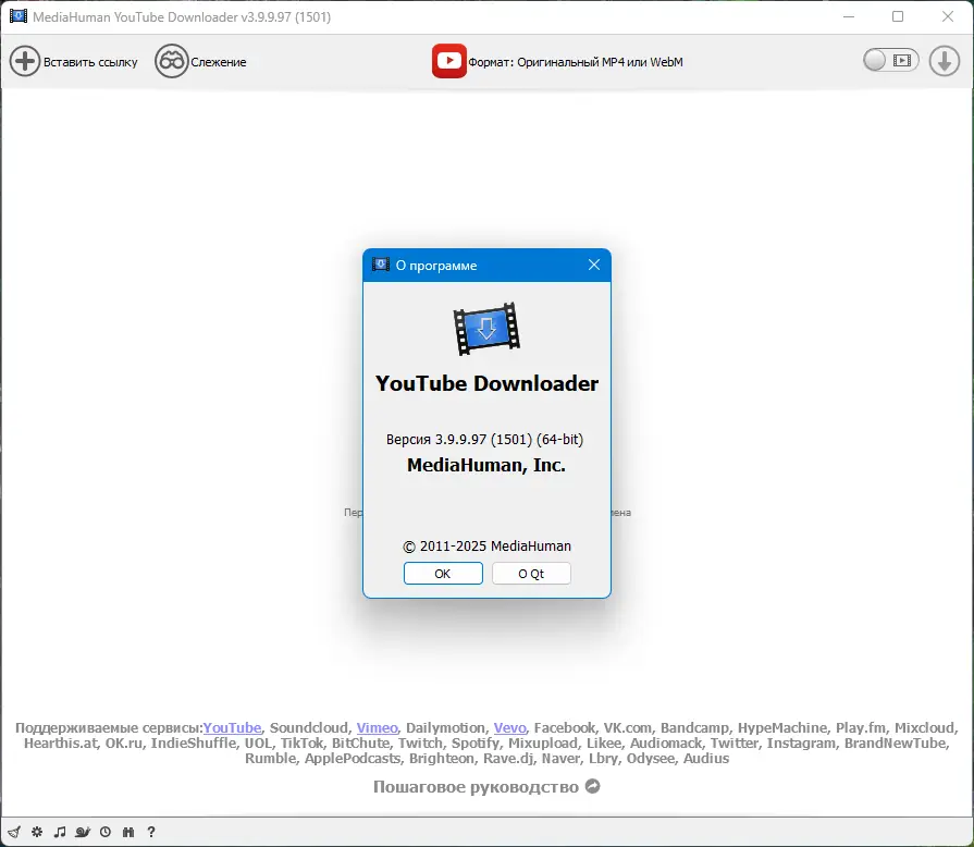 MediaHuman YouTube Downloader — удобное приложение для загрузки видео и аудио с YouTube и других платформ. Программа поддерживает высокие разрешения, включая 4K и 8K, а также позволяет сохранять контент в оригинальном качестве. Вы можете использовать её для скачивания отдельных роликов, целых плейлистов или каналов.