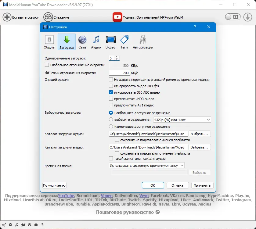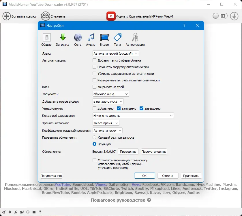 Работа с MediaHuman YouTube Downloader