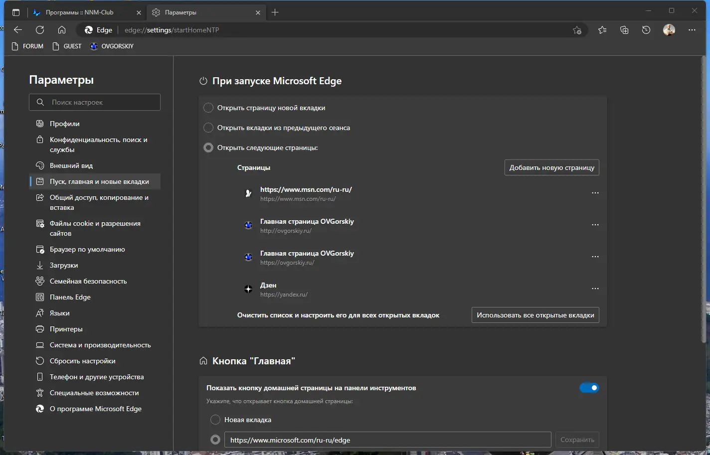 Работа с Microsoft Edge