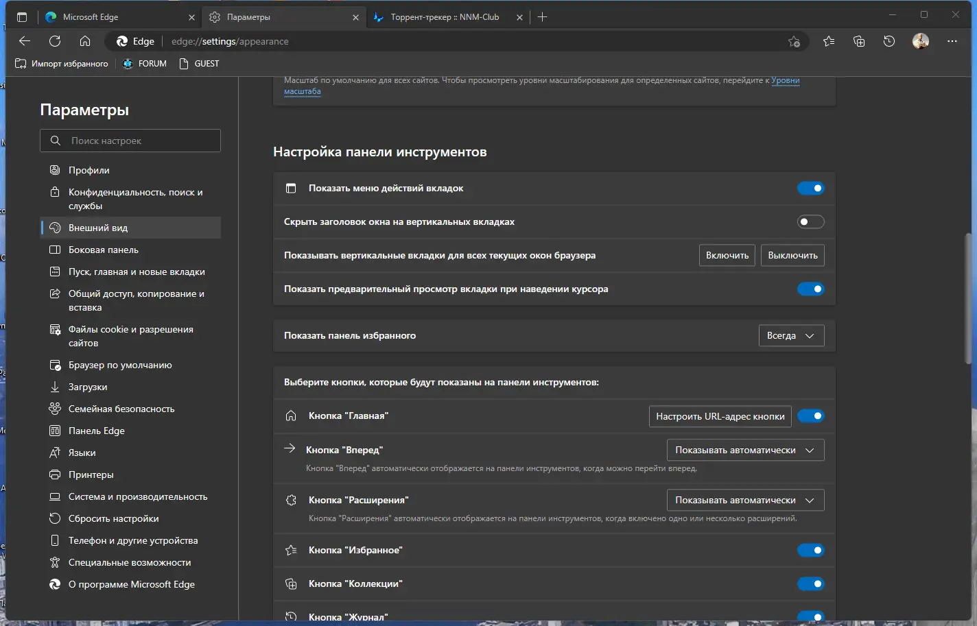 Работа с Microsoft Edge