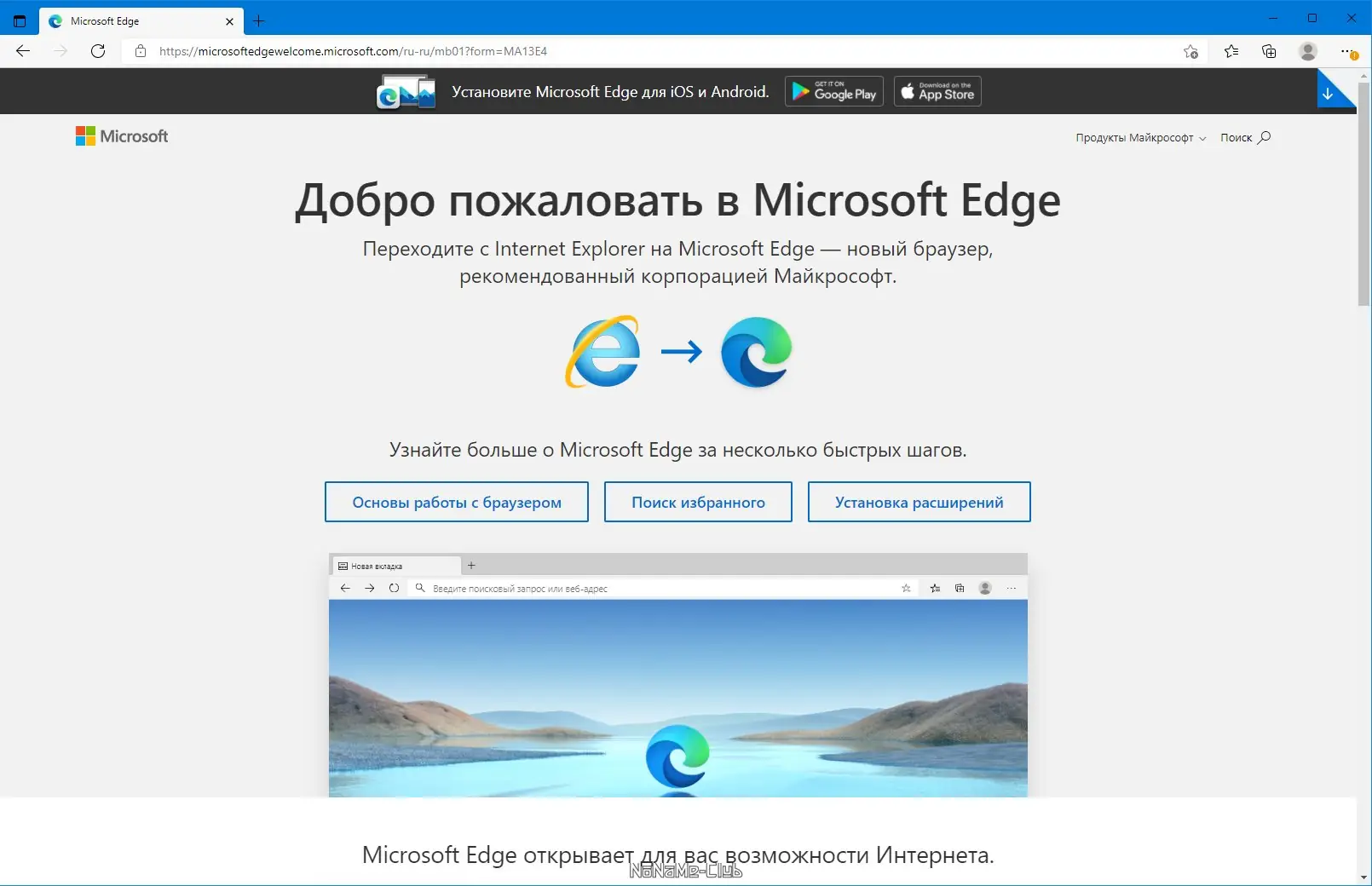 Работа с Microsoft Edge