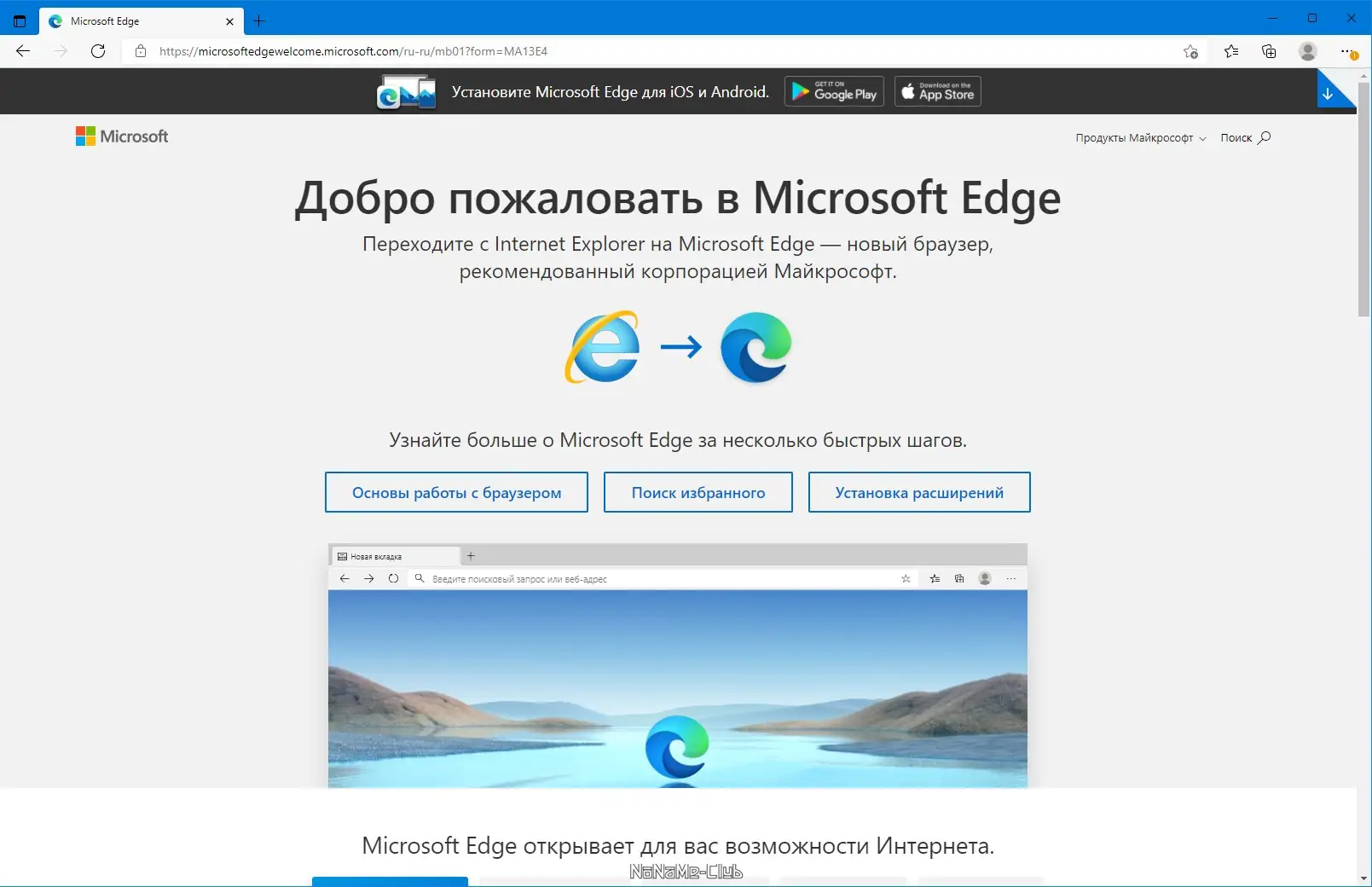 Работа с Microsoft Edge