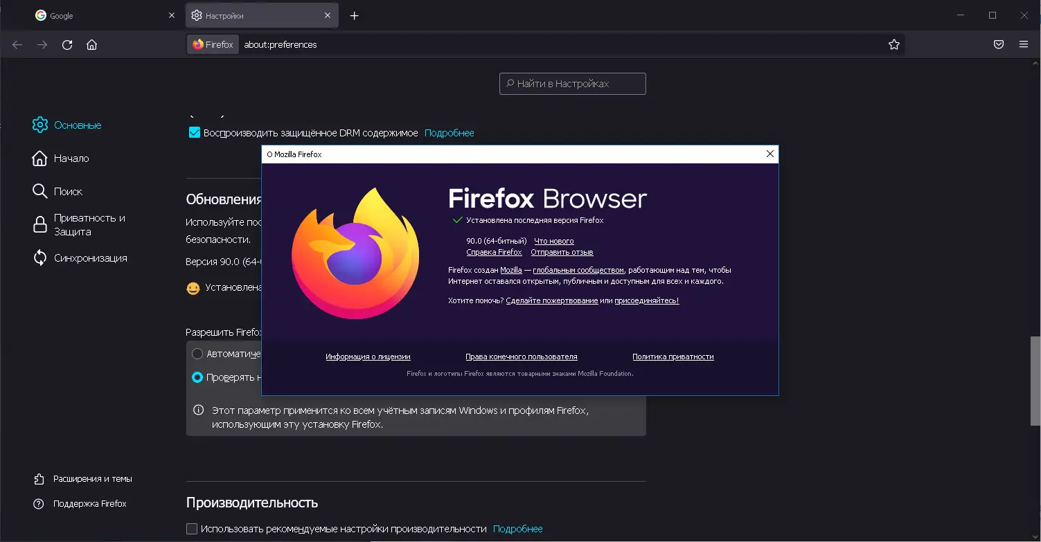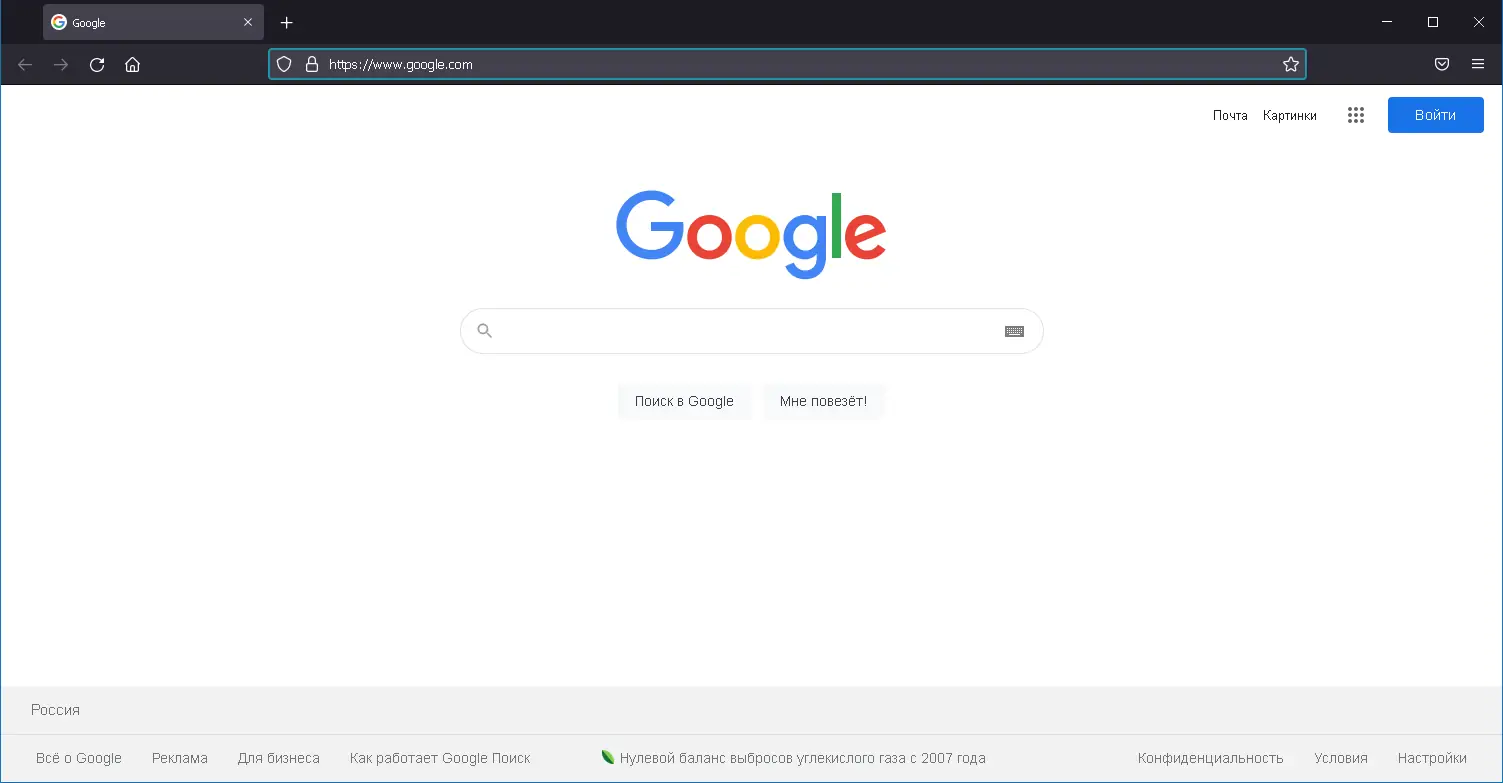 - Интерфейс настроен под русскоязычного пользователя с поисковой системой Google по умолчанию.