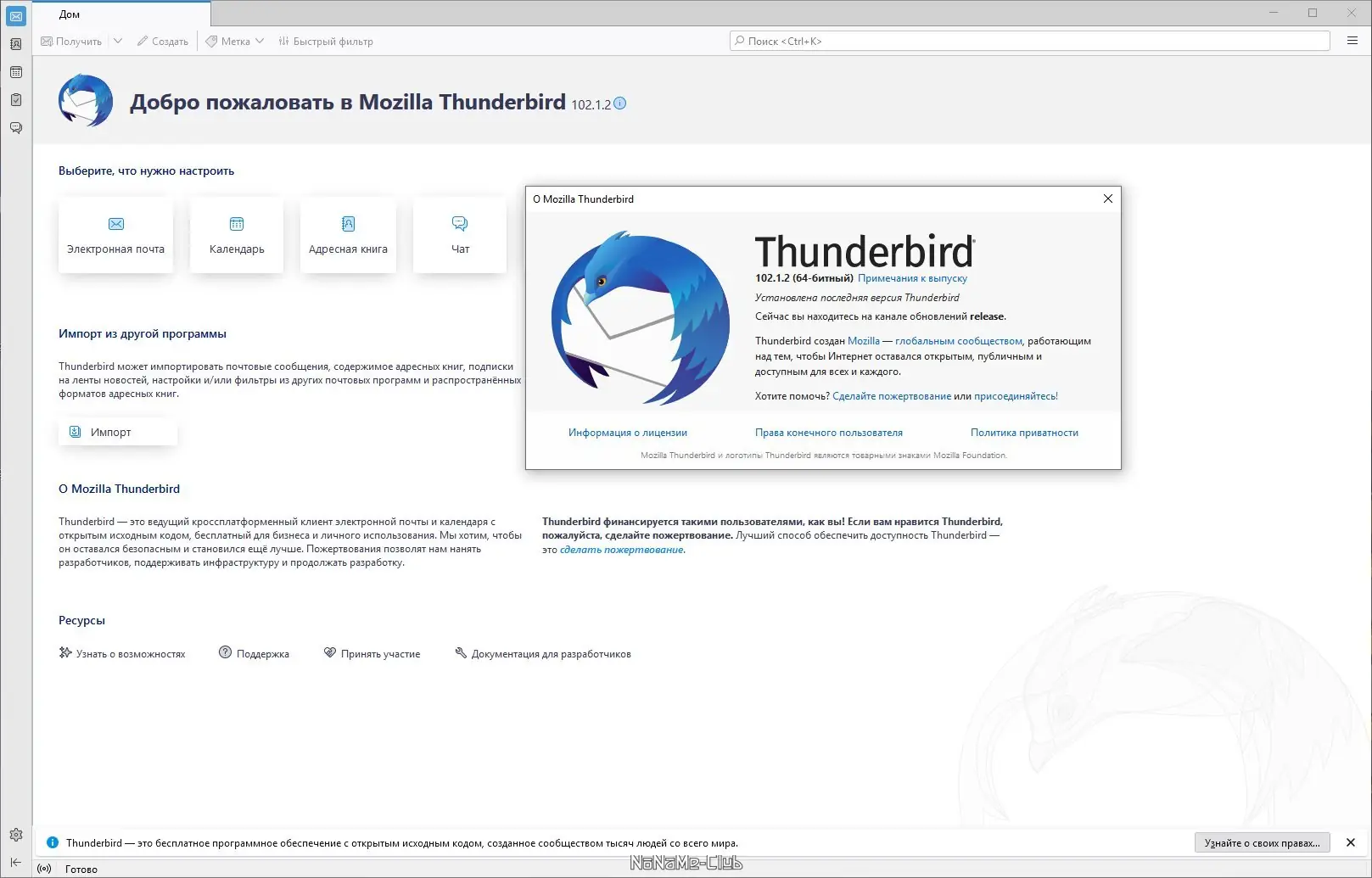 Mozilla Thunderbird — это надёжный почтовый клиент с открытым исходным кодом, разработанный для эффективной работы с электронной почтой. Программа поддерживает различные протоколы обмена сообщениями, включая IMAP, POP3 и SMTP, и совместима с большинством почтовых сервисов. Благодаря гибкой архитектуре, она подходит как для личного, так и для профессионального использования. Thunderbird активно развивается, получает регулярные обновления и поддерживается международным сообществом разработчиков.