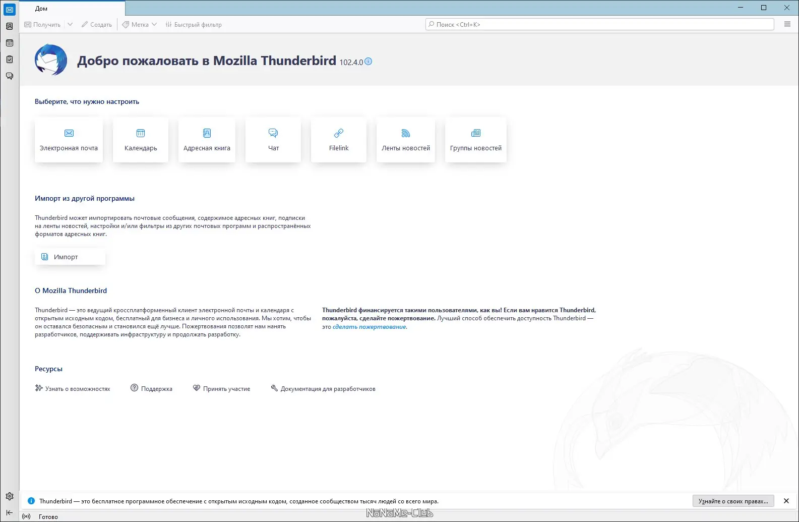 Mozilla Thunderbird — это надёжный почтовый клиент с открытым исходным кодом, разработанный командой Mozilla. Он предназначен для управления электронной перепиской, поддерживает POP3, IMAP и SMTP, а также предлагает расширенные функции для повышения продуктивности. Программа активно развивается, регулярно получает обновления и поддерживается международным сообществом разработчиков.