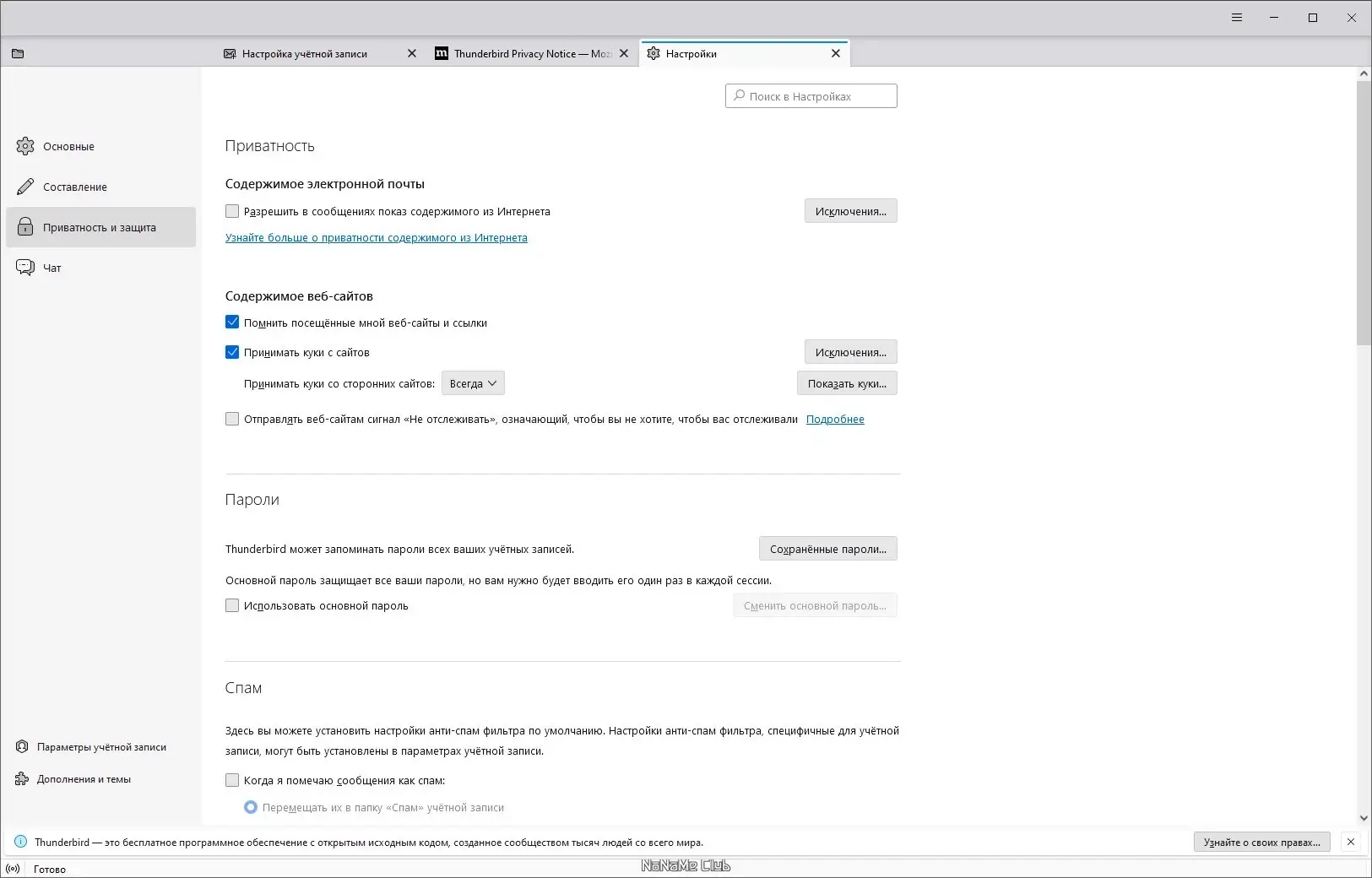 Работа с Mozilla Thunderbird