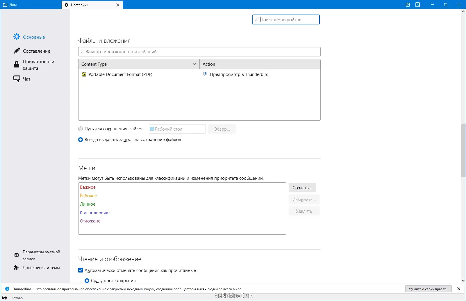 Работа с Mozilla Thunderbird