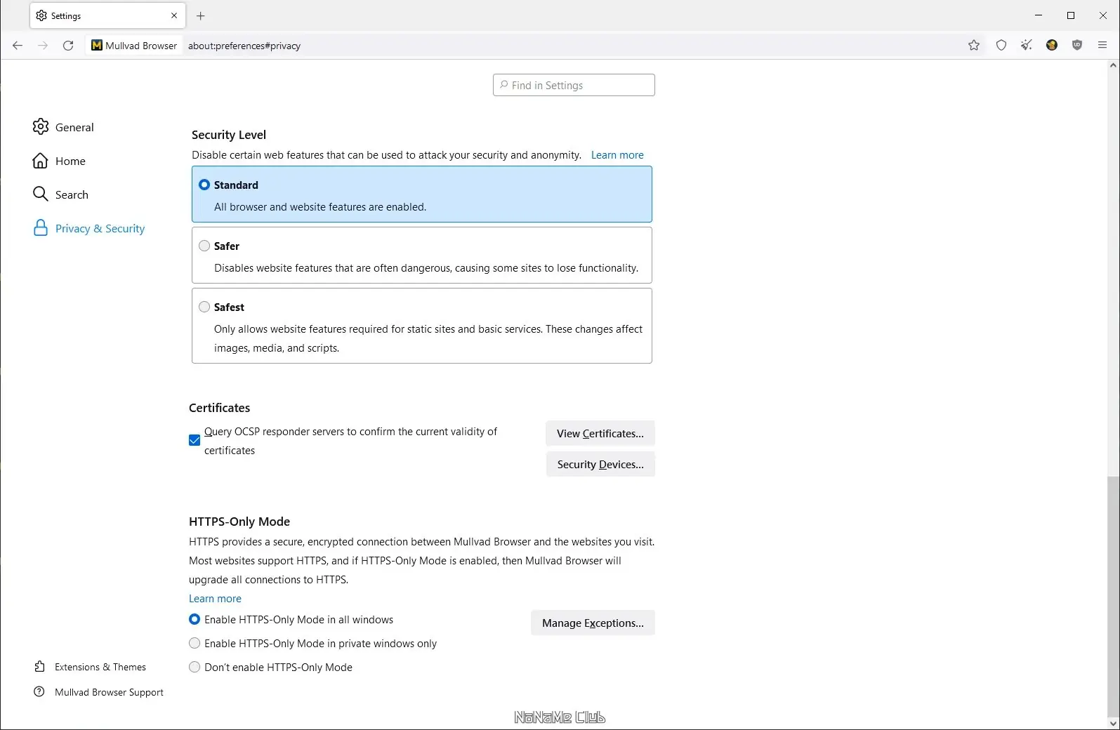 - Включает в себя режим «HTTPS Only», принудительно активирующий шифрование на всех поддерживаемых сайтах.