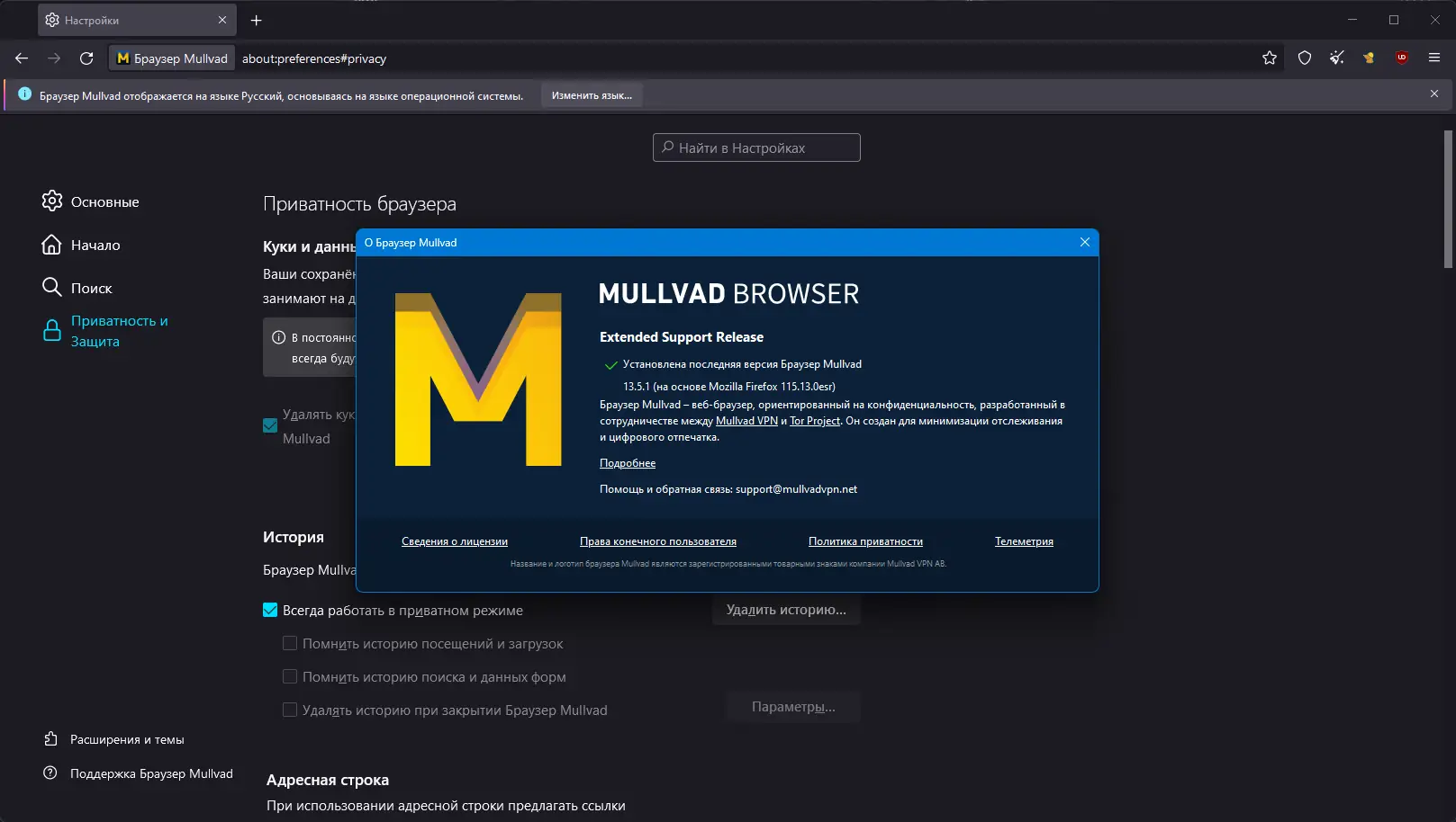 Mullvad Browser создан совместными усилиями команды Mullvad VPN и разработчиков Tor Project, но функционирует независимо от сети Tor. Основой браузера выступает проверенный движок Firefox ESR, который обеспечивает стабильность и регулярные обновления безопасности. В отличие от классического Tor Browser, этот инструмент ориентирован на использование с любым качественным VPN, позволяя при этом сохранять высокий уровень приватности. Он не требует обязательного подключения к сервису Mullvad и может работать с любым провайдером, обеспечивающим защиту трафика.
