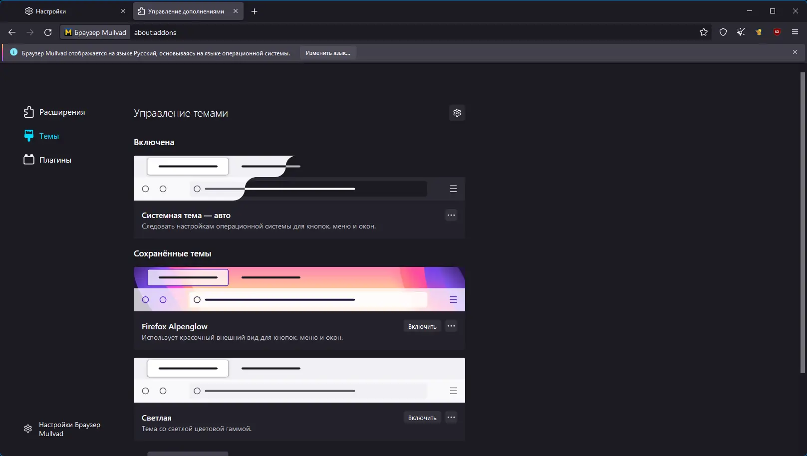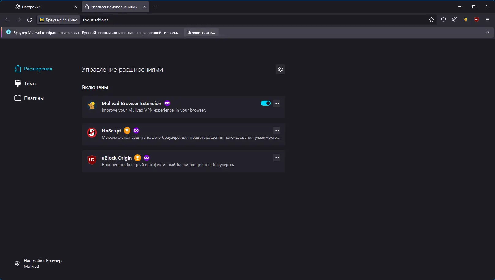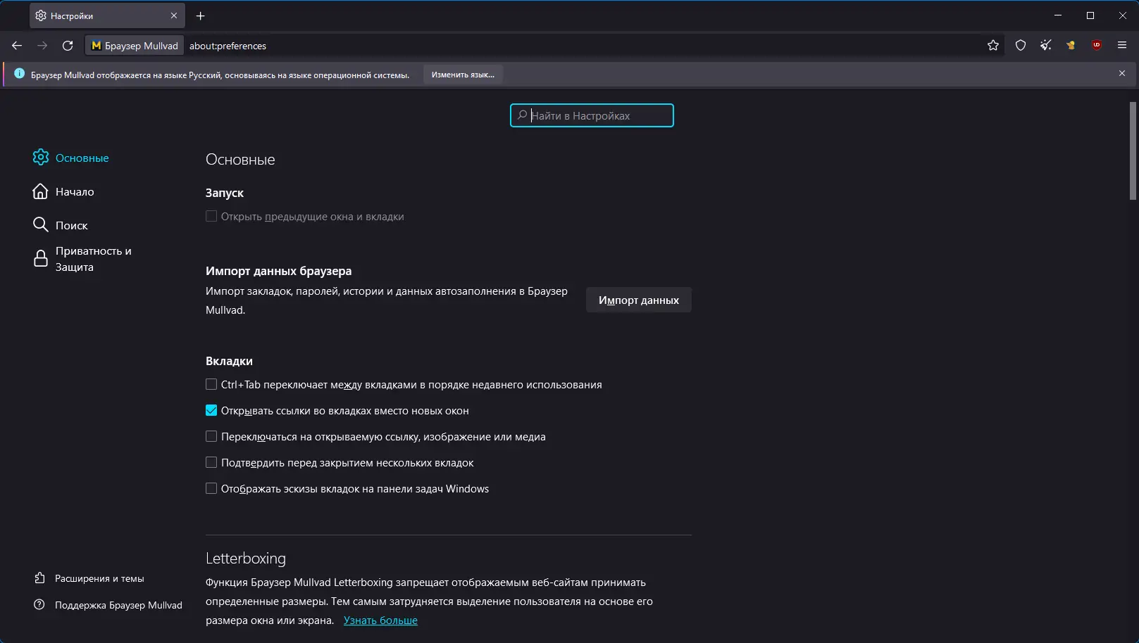 Работа с Mullvad Browser